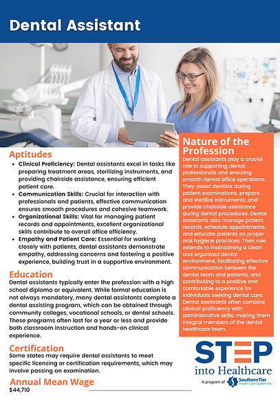 A career as a dental assistant offers a dynamic and rewarding opportunity to work alongside dentists in providing essential oral healthcare. Dental assistants play a crucial role in patient care, performing tasks such as preparing patients for treatments, sterilizing instruments, taking dental x-rays, and maintaining patient records. This profession requires a blend of technical skills, attention to detail, and interpersonal communication, making it ideal for those who enjoy hands-on work and interacting with people. With opportunities for specialization and career advancement, dental assisting is a fulfilling path for those passionate about contributing to the health and well-being of others.